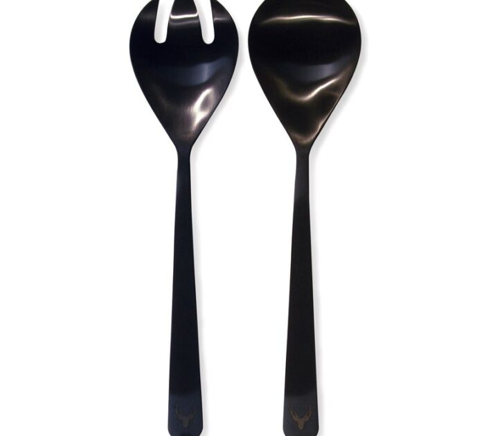 -Couverts en inox 18/10 ionisé, couleur noir mat, motif tête de cerf