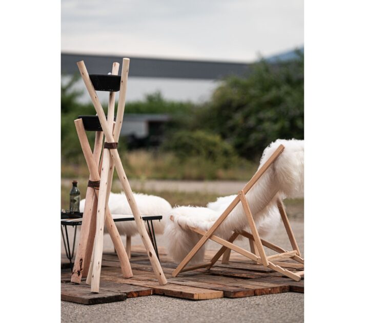 La collection Hannibal propose un transat qui évoque un style traditionnel mais qui demeure toutefois intemporel. Conçu en bois d’eucalyptus, cette pièce est surmontée d’une toile en mouton islandais qui ajoute une touche de chaleur naturelle à l'ensemble, créant ainsi un effet cocon. L'allure scandinave de la collection se manifeste à travers un design épuré et élégant, disponible en noir ou en écru.