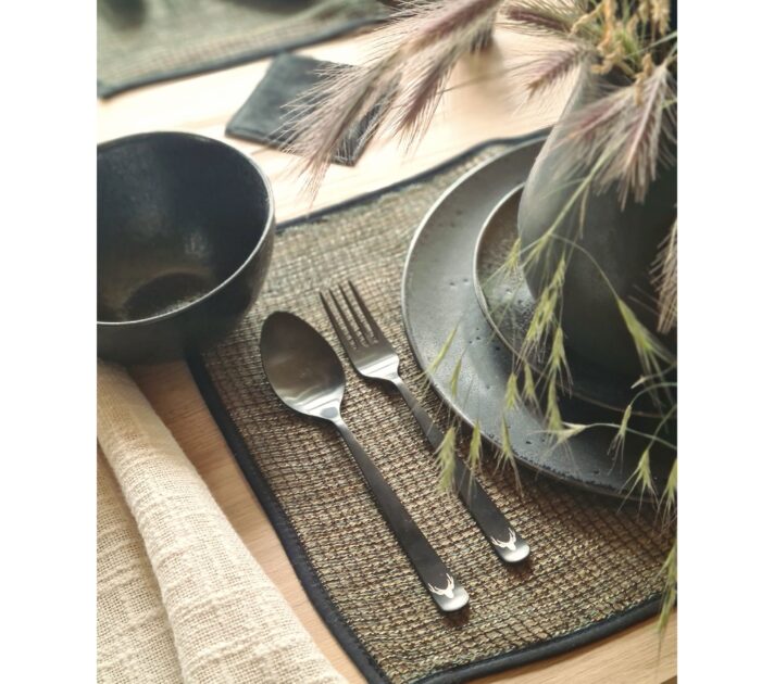 La collection Rossi se distingue par son apparence singulière, avec une maille à effet aux finitions soignées. Le vert intense est souligné par la ganse noire qui entoure chaque pièce de cette collection, apportant chic et raffinement à votre intérieur. La matière légère et aérée, contrastée par la vivacité de la couleur, créé une harmonie captivante.